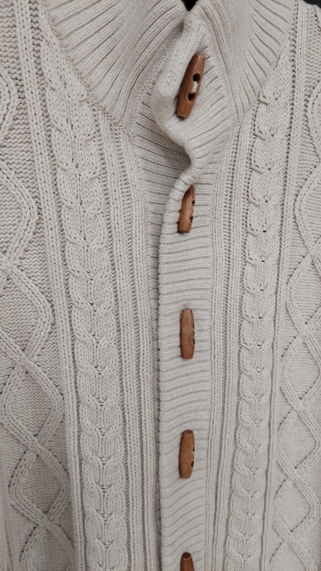 materiaali: 100% puuvillaa (vähän paksumpaa neulosta), puiset napit